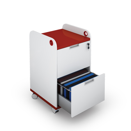 دارای 2 کشو جهت نگهداری پوشههای استاندارد، دارای قفل مرکزی اتولاک، دارای چرخ سایلنت