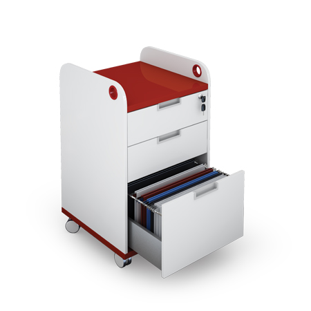دارای 2 کشو برای نوشت افزار و لوازم جانبی، دارای کشو جهت نگهداری پوشههای استاندارد، دارای قفل مرکزی اتولاک، دارای چرخ سایلنت