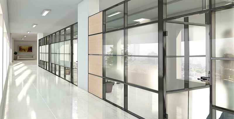 پارتیشن اداری دو جدار با پوشش تمام شیشه پریوال تیپ 8553