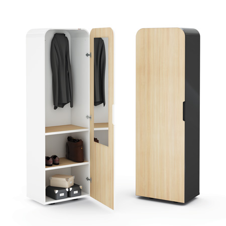 ویژگی‌ها دارای آینه در قسمت پشت درب، دارای 2 طبقه برای نگهداری کیف، کفش و لوازم شخصی، دارای 2 قلاب لباس